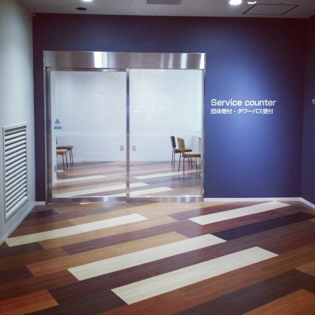 団体カウンターは建物の中に新設されたインフォメーションカウンター奥にあります